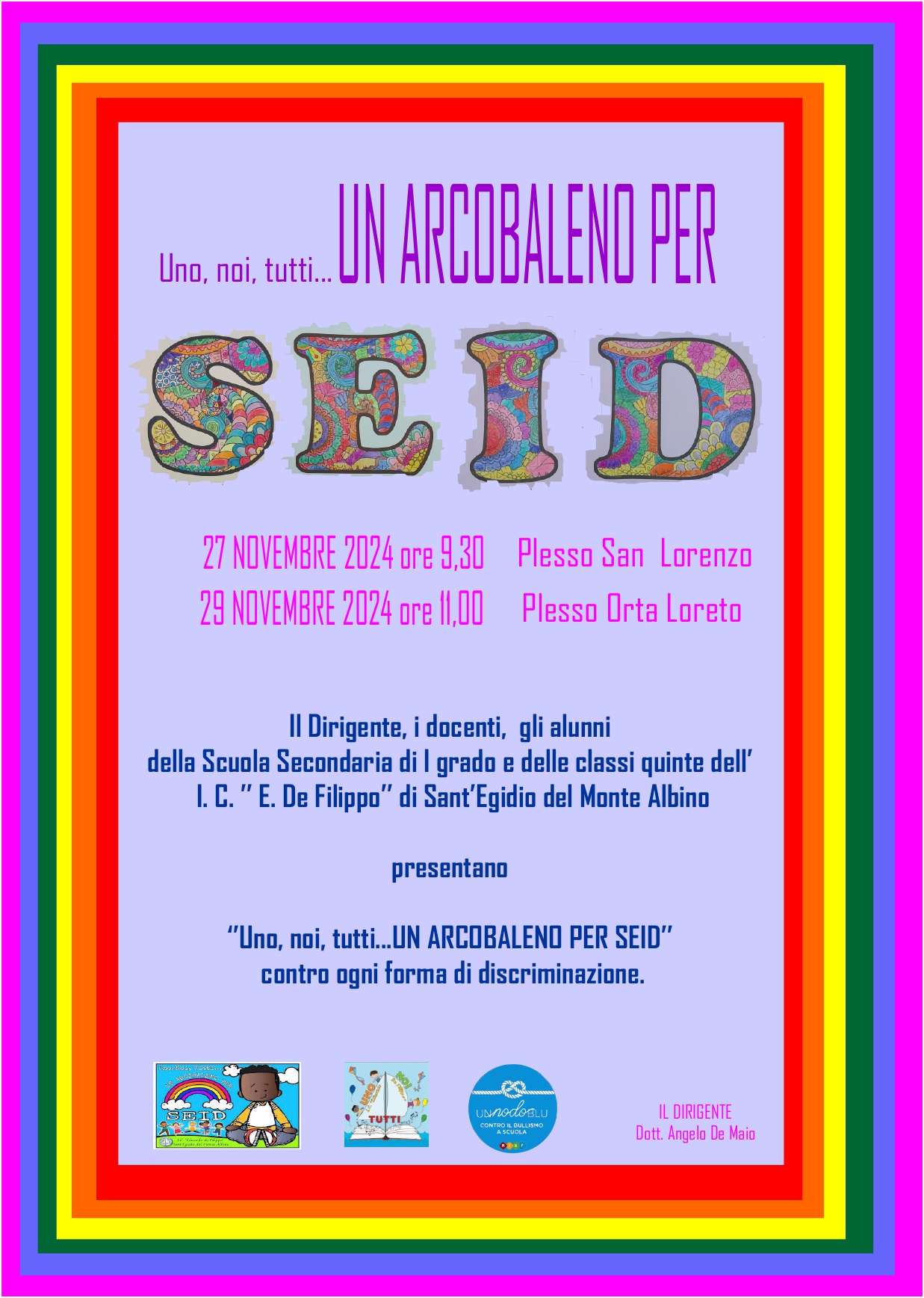 PRESENTANO:  “Uno Noi Tutti…UN ARCOBALENO PER SEID” contro ogni forma di discriminazione. _LOCANDINA SEID 2024