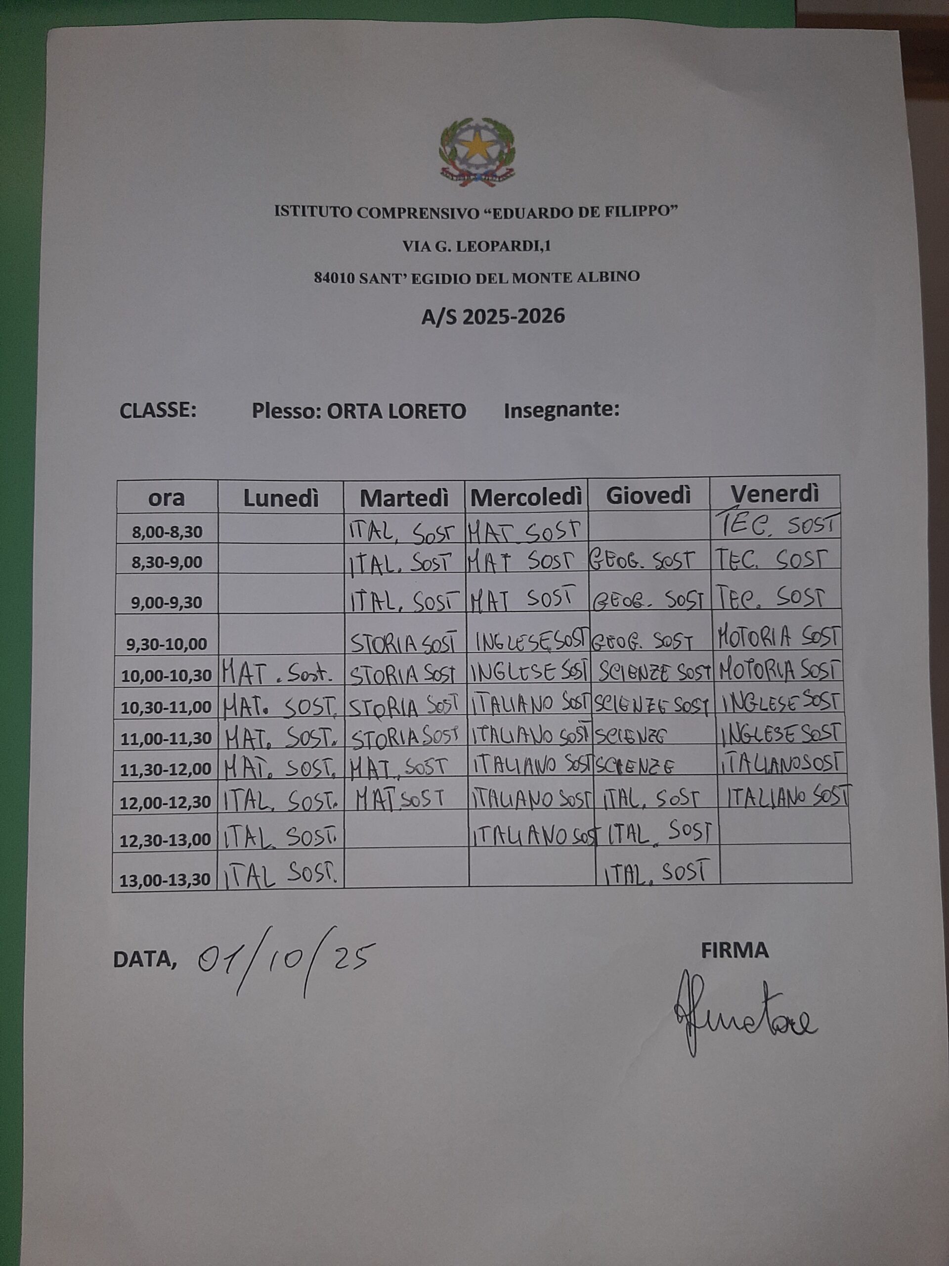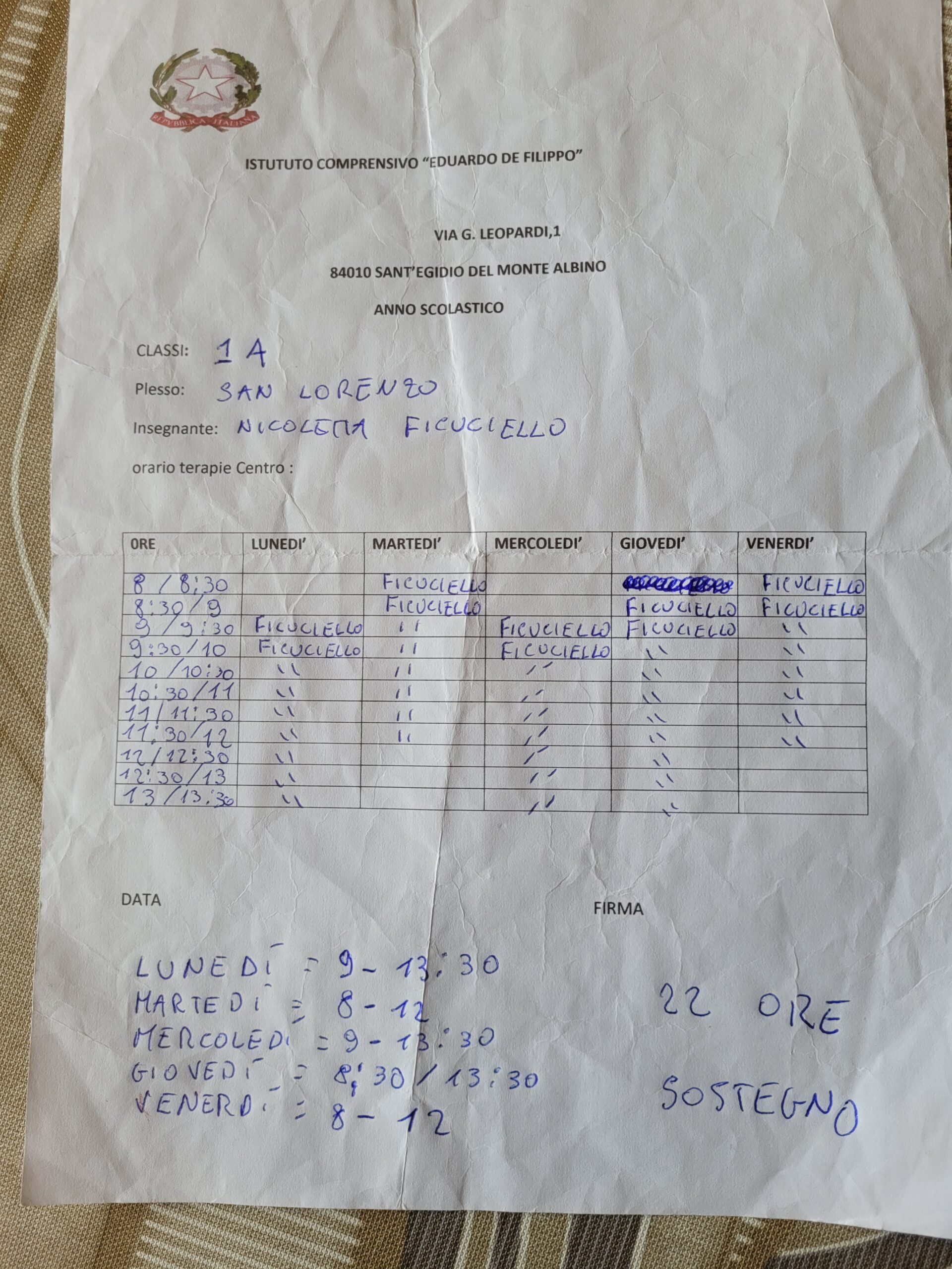 Tabella oraria 1A tabella oraria -Roscigno