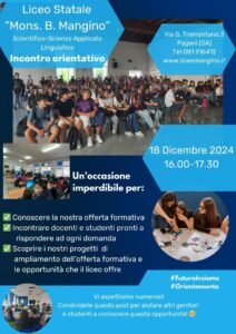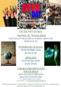 Manifesto locandina Percorsi di orientamento E.FERMI LICEO SENSALE Invito Open Days e Laboratori OFFERTA FORMATIVA LICEO DE SANCTIS 2025-2026 Master class latino greco Orientamento 202425 |